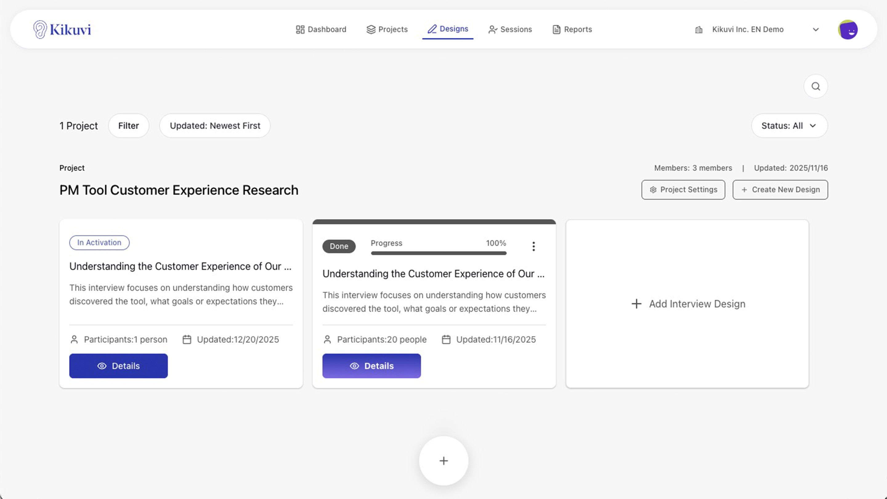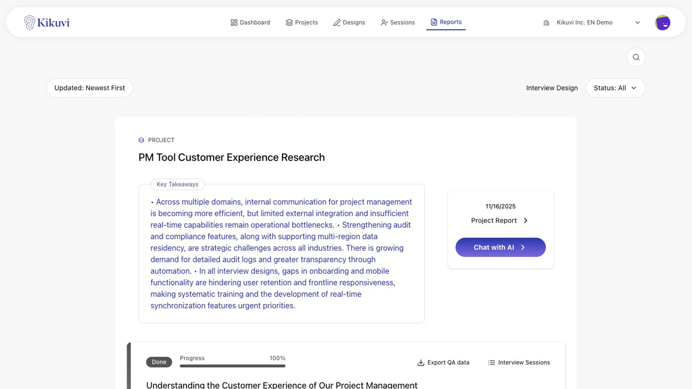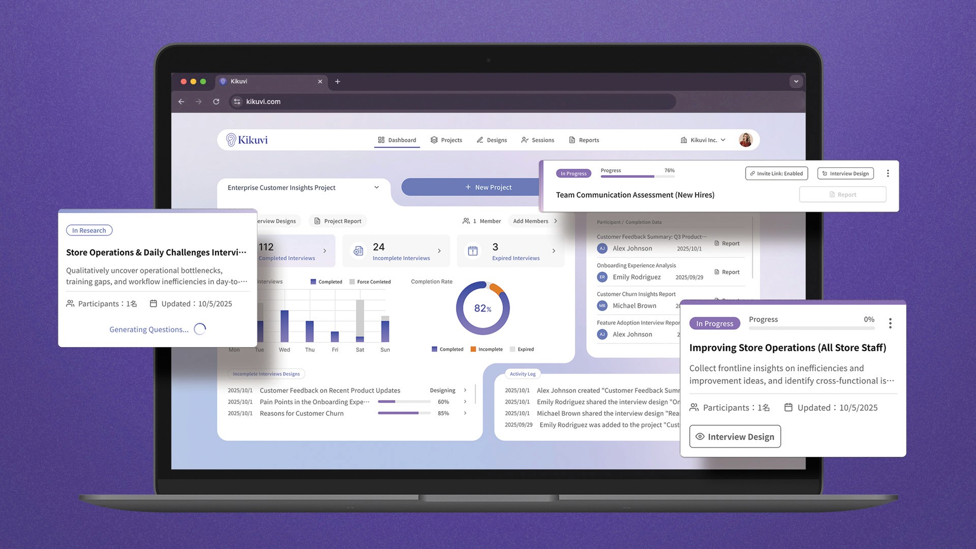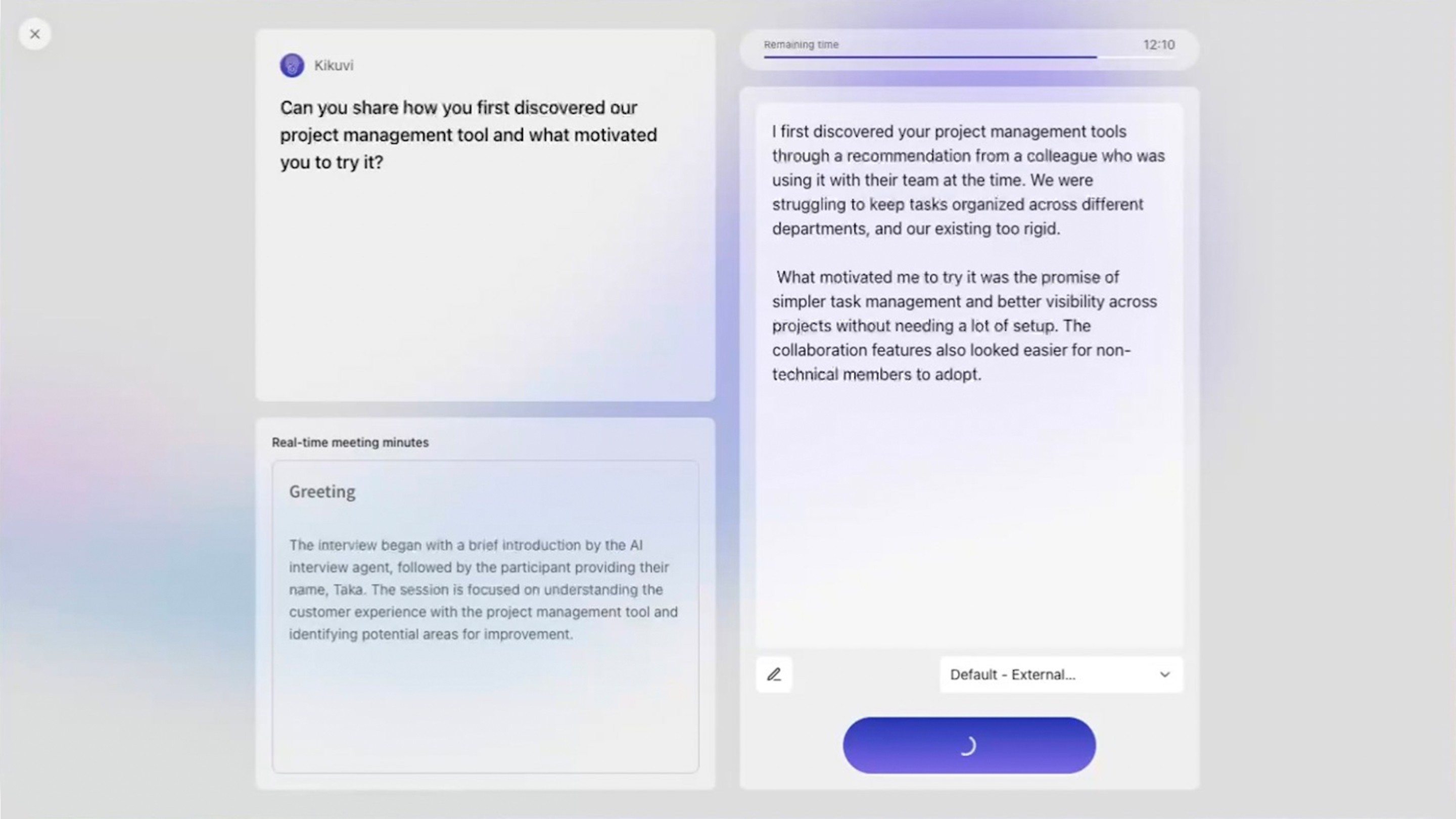 Kikuvi is an AI interviewing platform designed to automate and structure business interview workflows. It integrates processes from question design through response collection, summarization, structuring, and insight extraction—transforming conversations and raw voice into decision-ready insights.